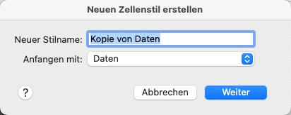 Gibt einen Namen für einen neuen Zellenstil sowie einen vorhandenen Zellenstil an, auf dem der neue Stil basieren soll.