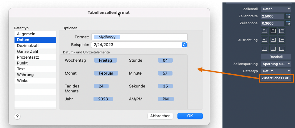 5. Klicken Sie, falls verfügbar, auf Zusätzliches Format, um das Dialogfeld Tabellenzellenformat mit weiteren Formatierungsoptionen anzuzeigen.