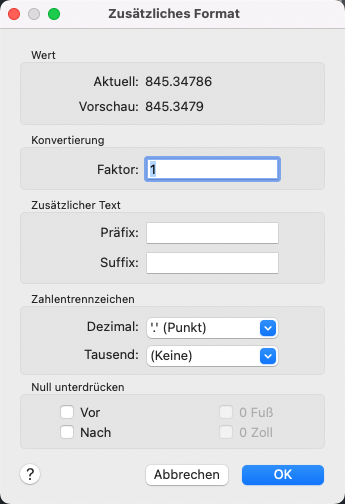 Legt den Konvertierungsfaktor fest, der für den aktuellen Wert verwendet werden soll. Der Vorgabewert ist 1 für keine Konvertierung.