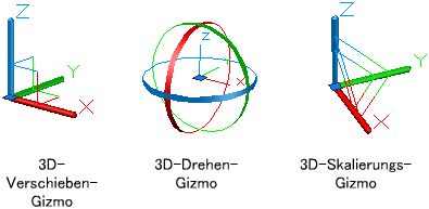 Indem Sie das Drehen auf eine Achse oder Ebene beschränken, helfen Gizmos unerwartete Resultate zu vermeiden Vorgabemäßig werden Gizmos angezeigt, sobald Sie ein Objekt in einer Ansicht mit einem visuellen 3D-Stil auswählen. Sie können die Anzeige auch unterdrücken. Daher müssen Sie die Befehle zum 3D-Schieben, 3D-Drehen oder 3D-Skalieren nicht explizit aufrufen, um die entsprechenden Vorgänge auszulösen. Sie brauchen nur ein Objekt auszuwählen.
