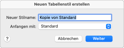 Das Dialogfeld Neuen Tabellenstil erstellen wird angezeigt.