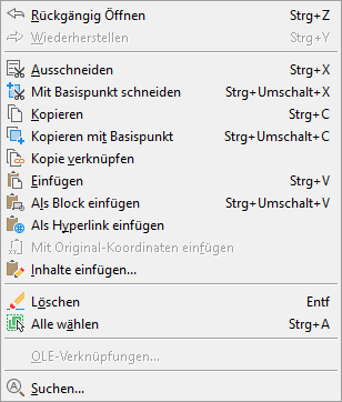 Das folgende Beispiel zeigt das Menüelement OLE-Verknüpfungen im Menü Bearbeiten, das durch ein Häkchen markiert ist, sowie das Bild des Menüelements Kopie verknüpfen, das durch einen Rand hervorgehoben ist.