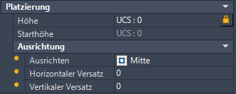 Die folgenden Ausrichtungseingstellungen sind auf der Eigenschaftenpalette verfügbar: