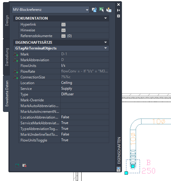 Sie können manuell einige Eigenschaftssatzdaten ändern, nachdem Sie einem Bauteil eine Beschriftung hinzugefügt haben. Wenn der Eigenschaftssatzwert automatisch abgeleitet ist, wie etwa eine Anschlussgröße, muss das Bauteil selbst geändert werden, um den gewünschten Eigenschaftssatzwert zu erzielen.