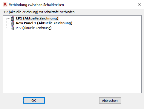 | Schutzschalter in Schalttafel | Die Schalttafel wird als Nebenleitungs-Schalttafel zu einem vorhandenen Schaltkreis in der verknüpften Schalttafel hinzugefügt. |