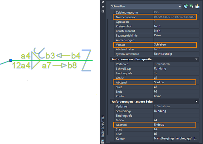 Sie können alle Schweißsymboleigenschaften in der Eigenschaftenpalette anzeigen und ändern.