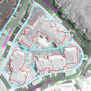 - Wählen Sie einen Punkt an der Bürgersteigkante (hellgrau) im unteren rechten Bereich.