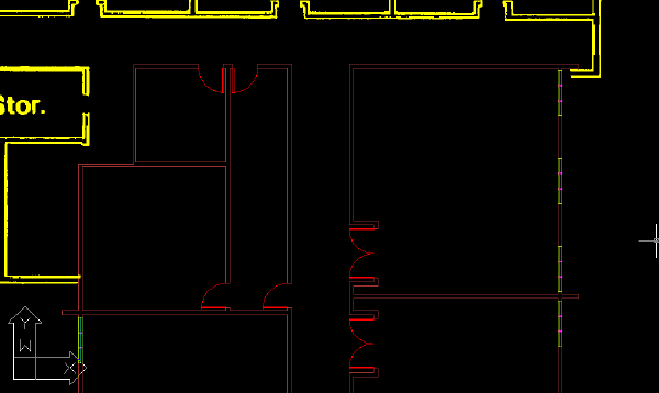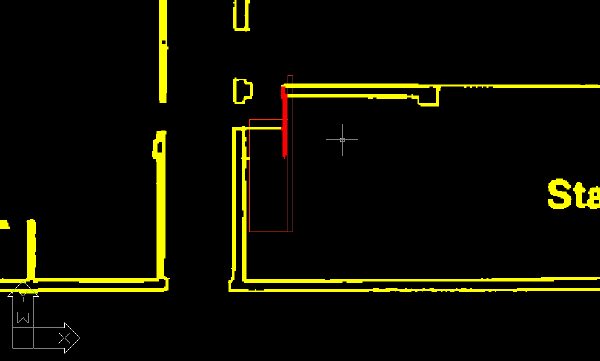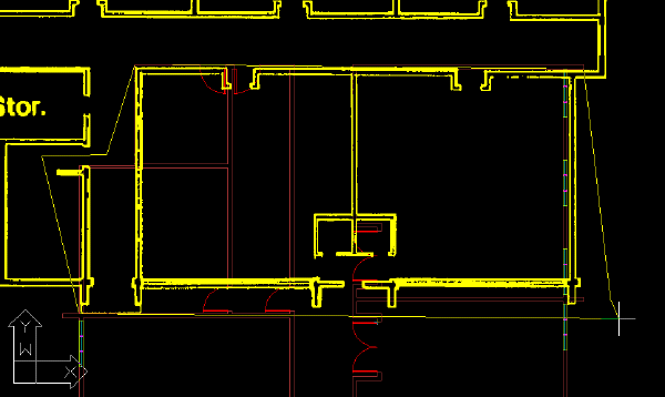 Intelligente Auswahl. Klicken Sie auf die vertikale Linie rechts von der alten Treppe. In diesem Fall wählt das AutoCAD Raster Design-Toolset die Linie aus, aber es wird keine Aktion ausgeführt. Die Linie ist nun Bestandteil eines REM-Auswahlsatzes. Sie können für den Auswahlsatz nun AutoCAD-Befehle wie beispielsweise LÖSCHEN ausführen.