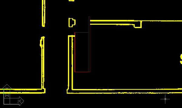 Im folgenden Beispiel wird dargestellt, wo Sie das Polygon zeichnen müssen, um den alten Eingang des Gebäudes zu entfernen. Das AutoCAD Raster Design-Toolset entfernt die Rasterdaten innerhalb des Polygons.