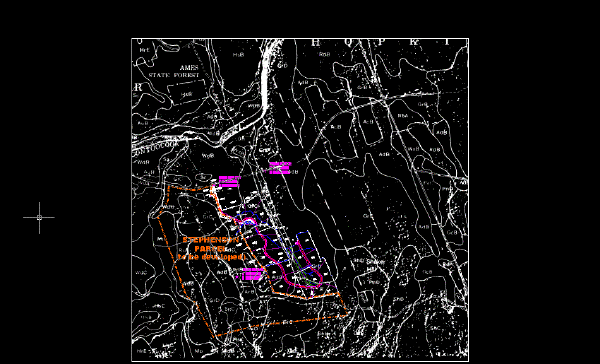 Nachdem Sie das Graustufenbild in ein bitonales (Schwarzweiß-) Bild konvertiert, das Bild invertiert und die Flecken entfernt haben, sind die Bodengrenzlinien im Bild leichter zu erkennen. Anschließend kann die resultierende Karte mit den Vektorwerkzeugen vom AutoCAD Raster Design-Toolset-Toolset in ein Vektorobjekt konvertiert werden.