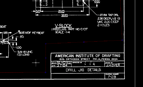 - Zeichnen Sie ein Polygon, das alle Detailzeichnungen und ihre Beschriftungen enthält, einschließlich des Schriftfelds in der Ecke rechts unten und drücken Sie die Eingabetaste.
