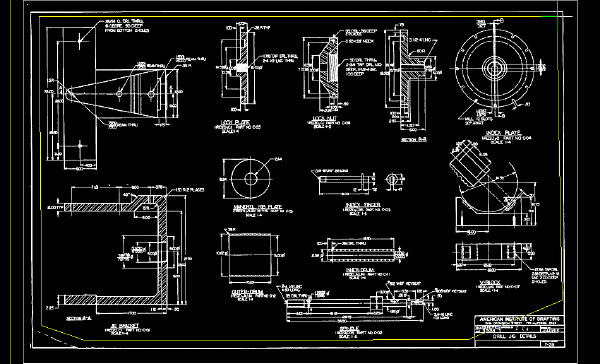 In dieser Übung arbeiten Sie mit einer Zeichnung, die zwei bitonale Bilder enthält, die aus technischen Zeichnungen eingescannt wurden: