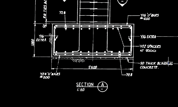 Einige der Rasterlinien sind sehr dünn. Einige Linien, wie z. B. die Maßlinien, weisen Lücken auf, die auf eine schlechte Scanqualität zurückzuführen sind.