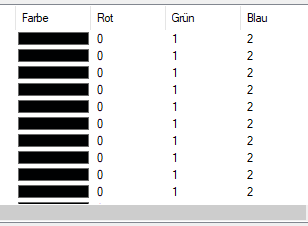 In der Palettenanzeige sehen Sie, dass viele Farben nicht verwendet werden. Diese nicht verwendeten Farben werden bei der Komprimierung der Palette gelöscht. Durch Komprimieren werden auch die Indizes im Bild geändert, sodass die verwendeten Farben alle oben in der Palette erscheinen.