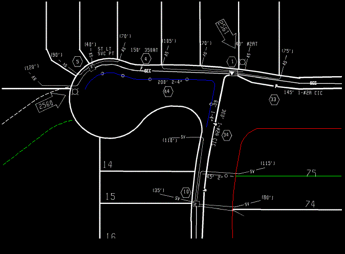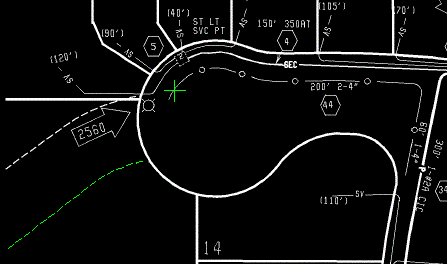 - Klicken Sie auf das linke Ende der Versorgungsleitung im Wendehammer, um die Linie in eine Polylinie zu konvertieren.