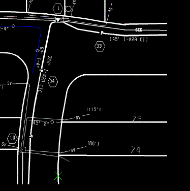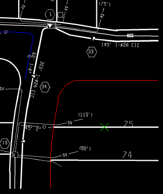 - Klicken Sie auf Breite abfragen und wählen Sie einen Punkt auf einer Versorgungsleitung aus, um dessen Breite in Pixeln zu bestimmen.