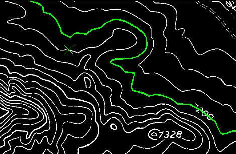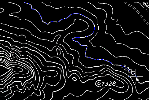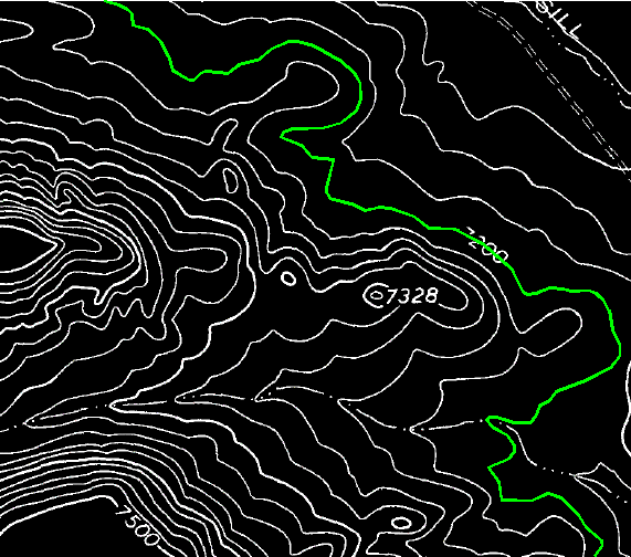 - Klicken Sie auf die Höhenlinie 7220, links neben der Höhenlinie 7200. Die ganze Linie wird verfolgt.
