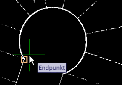 - Wählen Sie einen anderen Punkt auf dem Bogen aus und dann den dritten Punkt am Ende der Straßenseite (wieder mit der Endpunkt-Objektfangmarkierung). Drücken Sie die Eingabetaste, um den Befehl zu beenden.