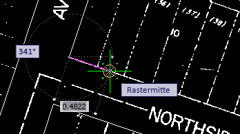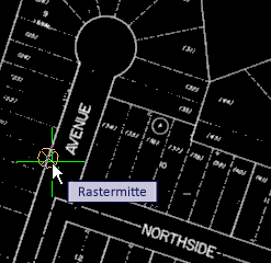 - Bewegen Sie den Mauszeiger auf die westliche Seite der Elmhurst Avenue und fangen Sie die Mitte der Rasterlinie ein. Das Rasterfang-Symbol und die QuickInfo Rastermitte werden zur Bestätigung angezeigt.