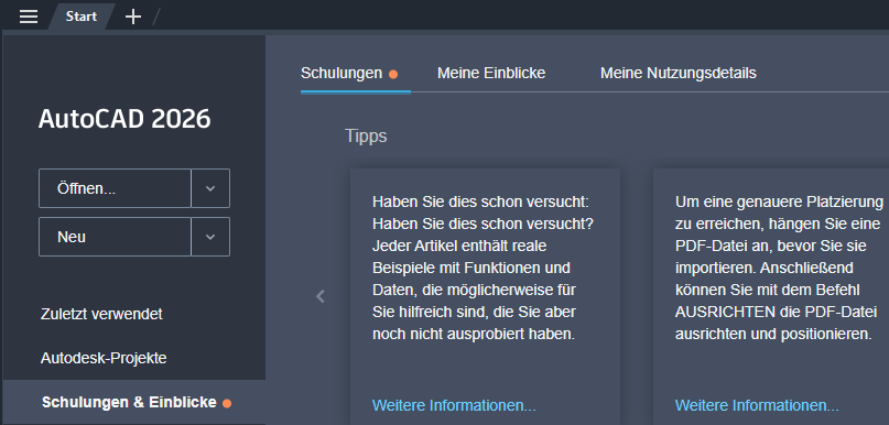 Erfahren Sie mehr über die neuen Funktionen in dieser Version von AutoCAD 2026. Technische Details finden Sie in den Versionshinweisen.