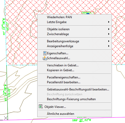 Abbildung 12: Kontextmenü für die Parzellenflächen-Auswahlbeschriftung