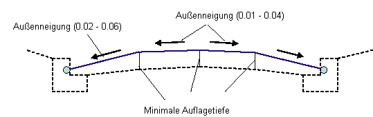 Tiefe (min.) der Auflage an Viertelpunkten und Dachprofil |