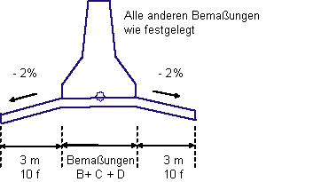 Hinweis: Alle Bemaßungen sind in Meter oder Fuß angegeben, wenn nicht anders vermerkt. Alle Neigungen sind in Länge/Höhe (zum Beispiel 4:1) angegeben, wenn nicht durch ein Prozentzeichen ("%") als prozentuale Neigung gekennzeichnet.
