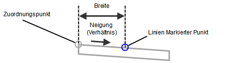 Dieser Querschnittsbestandteil ist ein allgemeines Dienstprogramm, mit dem ein Punkt auf einem Fahrspur-Querschnittsbestandteil ausgehend vom Zuordnungspunkt anhand einer angegebenen Breite und einem angegebenen Neigungsverhältnis markiert wird.