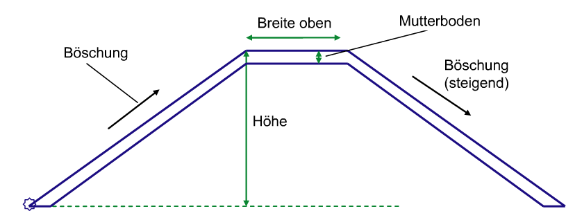 | Breite Oben | Breite dem oberen Rand des Lärmschutzwalls. | Numerisch, positiv |