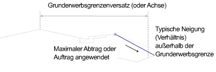 | Neigung (Verhältnis) beibehalten | Gibt an, wie zu verfahren ist, wenn die Neigung (Verhältnis) außerhalb des Grunderwerbslinien-Versatzes liegt. Folgende Optionen stehen zur Auswahl: Maximale Neigung beibehalten, Maximale Neigung überschreiben | Liste | Maximale Neigung beibehalten |
