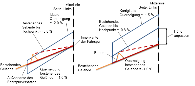 | Korrigierte Querneigung | Die korrigierte Querneigung wird auf -2.5 % angepasst. |