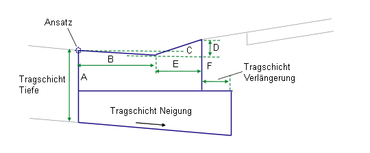 Entfernung, um die die untere Tragschicht über die hintere Kante des Bordsteins hinaus verlängert wird. Bei einem Wert von null endet die untere Tragschicht an dem rückseitigen Rand des Bordsteins |