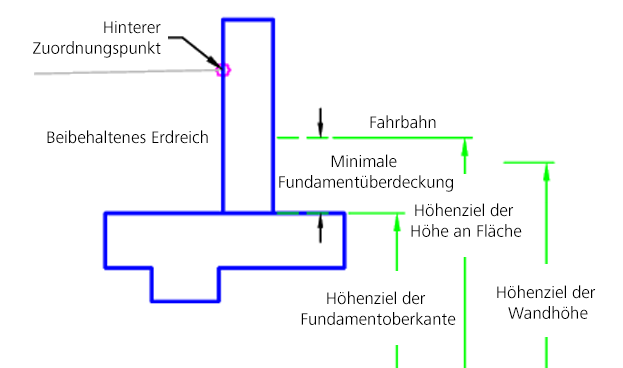 | Minimale Fundamentüberdeckung | Wenn nach hinten gerichtet, bestimmt dieser Parameter die Höhe über dem Fundament, sofern kein Höhenziel für die Flächenhöhe festgelegt wurde. | Numerisch, positiv |