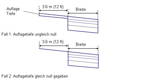 In der Entwurfsdarstellung wird dieser Querschnittsbestandteil jedem geeigneten Punkt zugeordnet. Die Auflageschicht wird über eine Breite von 3,6 m oder 12 ft mit einer Neigung von -2 % mit einer einheitlichen Stärke dargestellt. Die Aufweitungsfahrspur erstreckt sich von der Auflagekante für die angegebene Breite und Tiefe mit einer Neigung von -2 %.