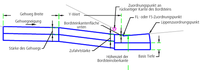 | Bordsteinkantenfläche unten | Höhe der Bordsteinfläche am niedrigsten Punkt der Zufahrt | Numerisch, positiv |