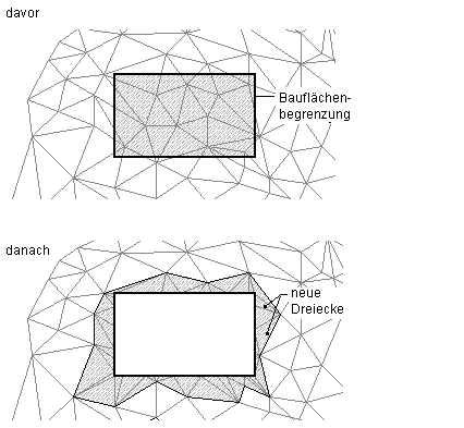 Wenn Sie eine verborgene Begrenzung verwenden, wird das DGM nicht gelöscht. Das gesamte DGM bleibt unberührt. Wenn Sie TIN-Linien dauerhaft aus dem DGM entfernen möchten, müssen Sie den Befehl Linie löschen verwenden.
