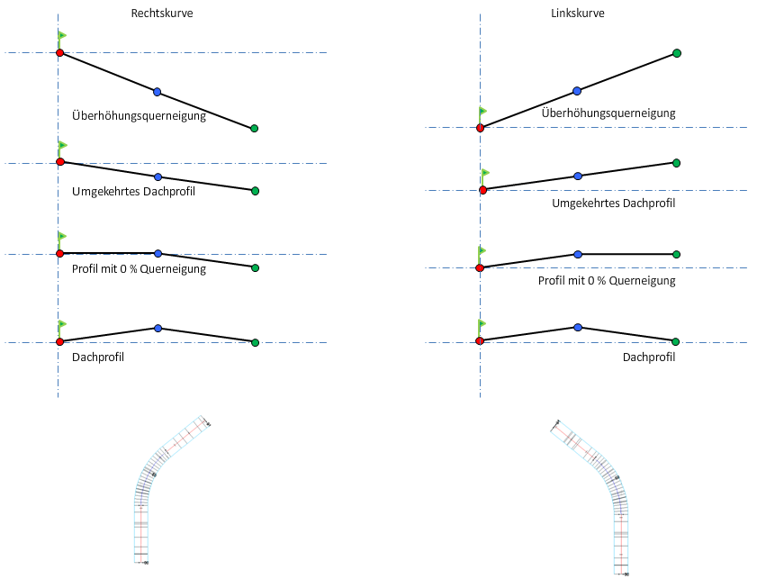 Eine Beschreibung der Querneigungsdiagramme finden Sie unter Informationen zu Drehpunktmethoden der Querneigungsdrehachse.