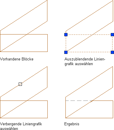 Der verdeckte Bereich wird durch eine gestrichelte Linie eingegrenzt. Sie können ihn (bzw. seine Komponenten) getrennt von der Liniengrafik auswählen, zu der er ursprünglich gehörte.