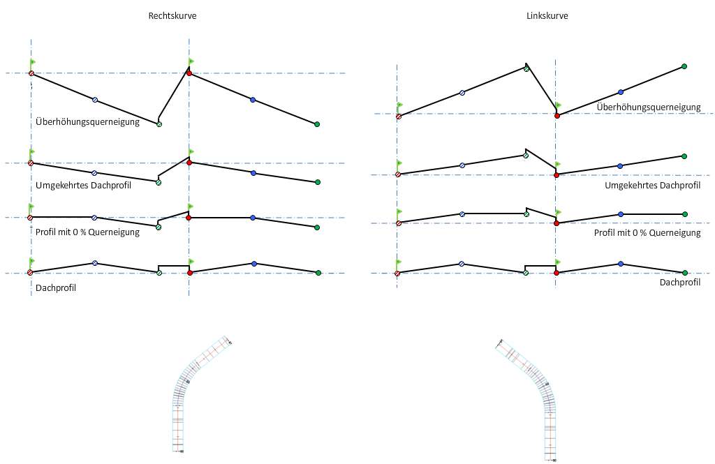 Eine Beschreibung der Querneigungsdiagramme finden Sie unter Informationen zu Drehpunktmethoden der Querneigungsdrehachse.