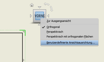 Doppelklicken Sie in einer Zeichnung auf eine Ansicht, um auf den ViewCube für diese Ansicht zuzugreifen. Klicken Sie mit der rechten Maustaste auf den ViewCube, und wählen Sie Benutzerdefinierte Ansichtsausrichtung aus.