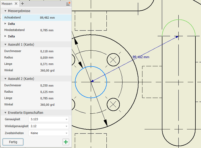 So messen Sie Abstand, Länge, Winkel, Kontur oder Fläche in Modellen oder Zeichnungen