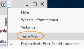 Über die Gruppe Team Web auf der Startseite, Registerkarte Extras