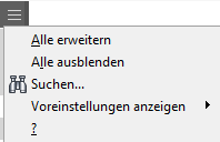 - Arbeitselemente ausblenden aktiviert bzw. deaktiviert die Anzeige aller Arbeitselemente und des Ursprungsordners.