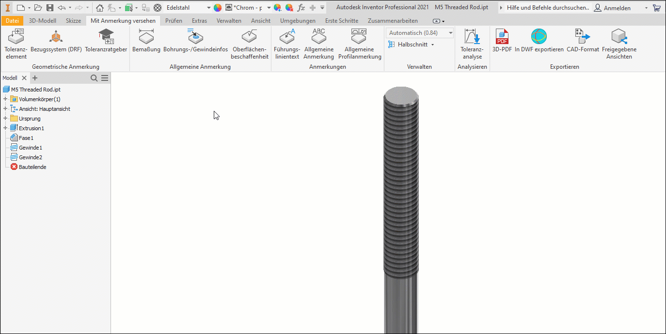 Erstellen Sie eine Außen- oder Innengewindeinfo in einer Bauteil-, Baugruppen- oder Zeichnungsdatei.