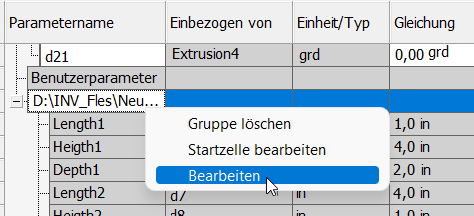 Nach dem Erstellen und Speichern einer Parameter-Tabellenkalkulation können Sie diese in jedem Bauteil- oder Baugruppenmodell verwenden.
