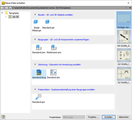 Sie können ein Arbeitsblattformat innerhalb der Vorlage verwenden, während Sie eine neue Zeichnungsdatei erstellen.