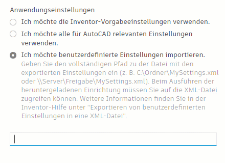 Option 1: Ich möchte die Inventor-Vorgabeeinstellungen verwenden.