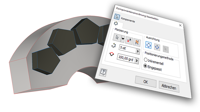 Die runde Anordnung für Komponenten wurde verbessert, um inkrementelle und angepasste Positionierungsmethoden bereitzustellen.