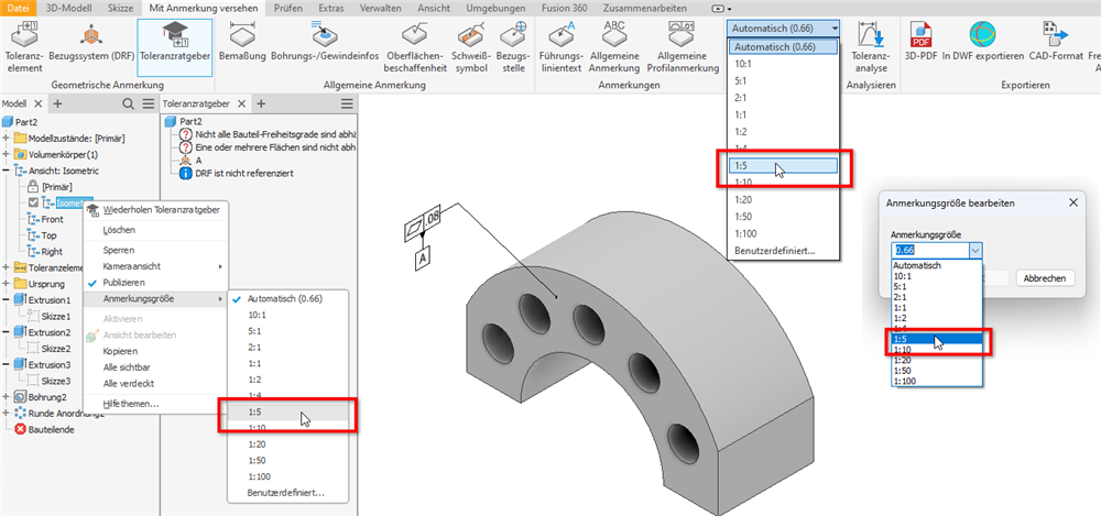 In dieser Version wurde der Dropdown-Liste für die Anmerkungsgröße der Maßstab 1:5 gemäß DIN EN ISO 55455 hinzugefügt.