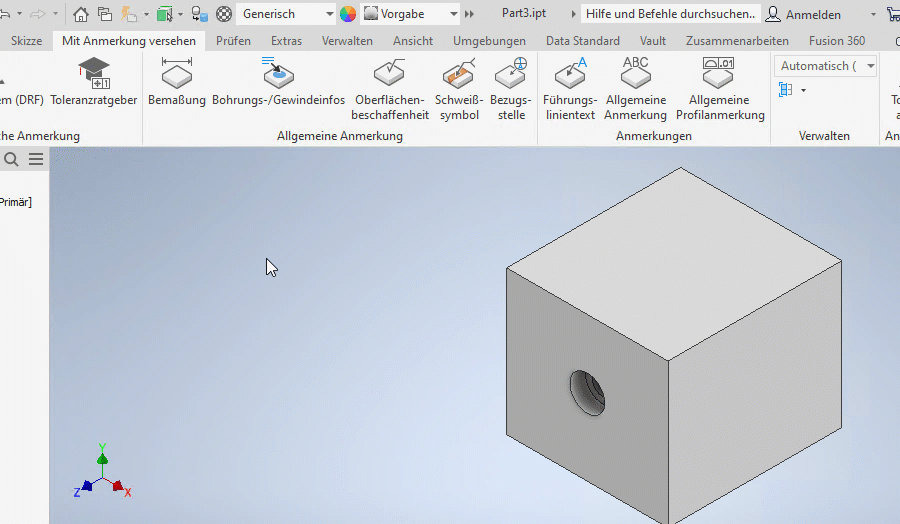 In Inventor können Sie eine Bauteildatei (.ipt) an Fusion 360 senden und manuelle Prüfaufgaben erstellen.
